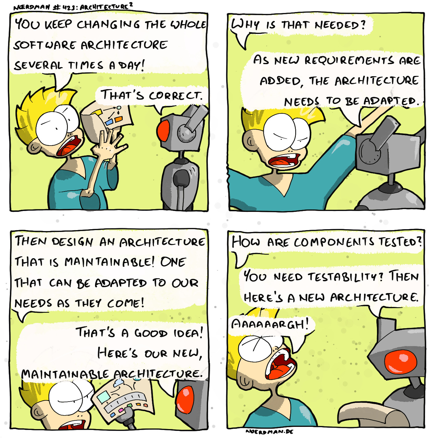 A web comic from the North, for technology freaks and geeks - and for those who desperately want to learn how to understand them. Since 2018, Noerdman, the Nordic geek, has been presenting a new comic each Monday. Teaching Technical Computer Science at the University of Bremen, we here illustrate some of the contents with dry Nordic humor and a good dash of self-irony. All those who love (or hate) computers: You are at the right place!